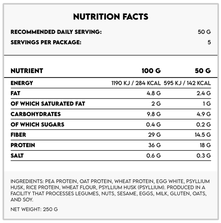 High-protein: 36g of protein per 100g – ideal support for muscles and fullness