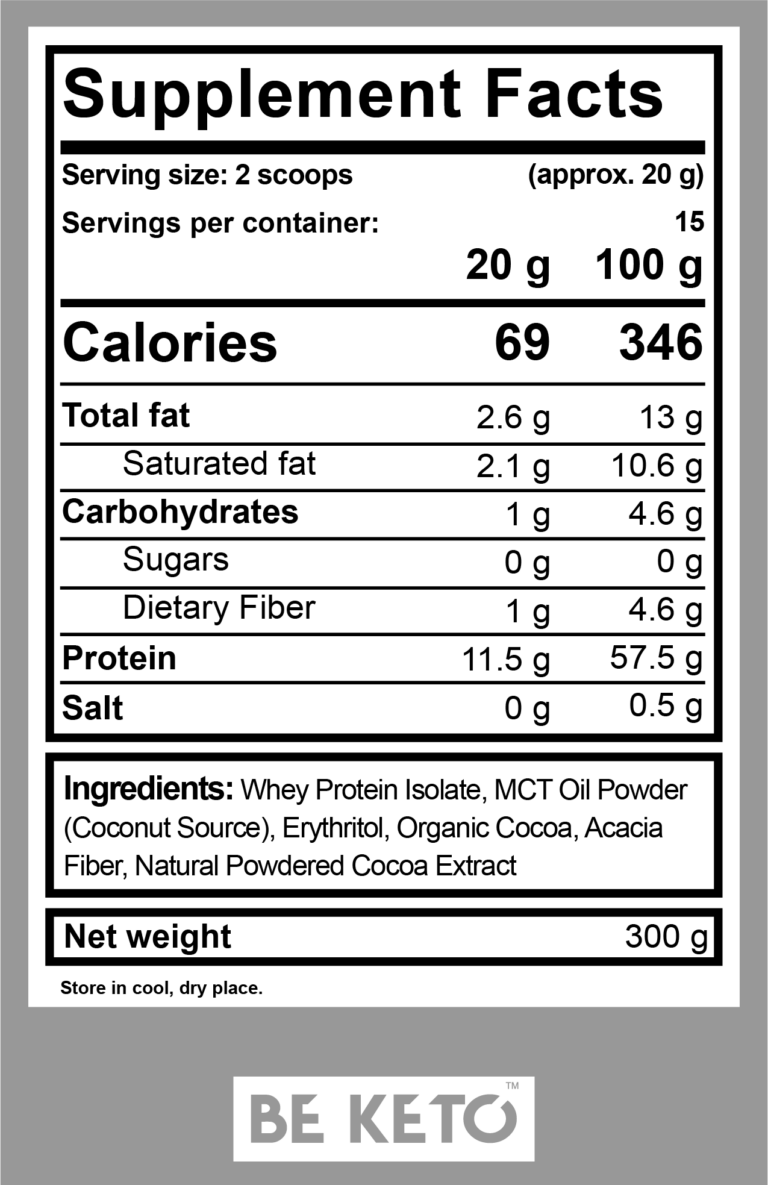 Keto Whey Isolate + MCT – Natural Chocolate 300g